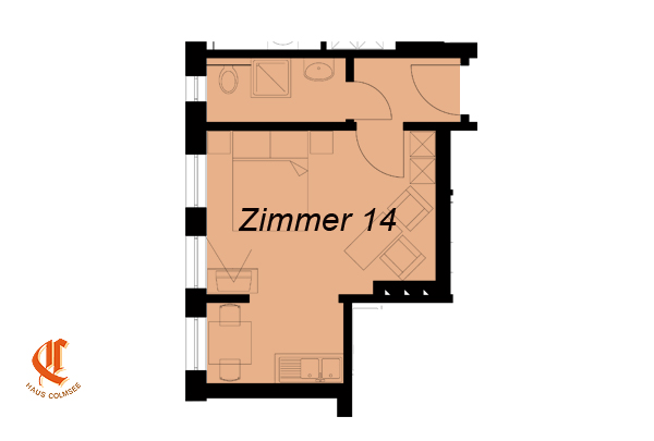 Unser Zimmer 14 befindet sich im 2. Obergeschoss zur Hof- / Süd-West-Seite.