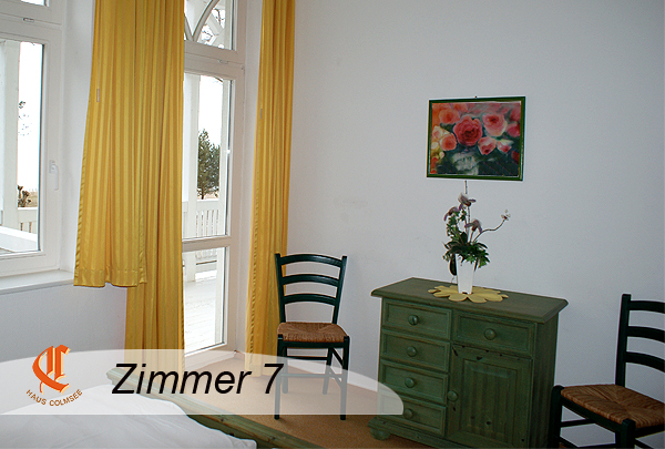 Unser Zimmer 7 als Zwei- Raum- Kombination mit separatem Schlafzimmer ist sehr schön im 1.Obergeschoss zur Strandpromenade und Ostsee gelegen und verfügt über einen großzügigen meerseitigen möblierten Balkon (ca. 12 m²). Auch hier genießen Sie einen traumhaften Blick auf die Ostsee bzw. Binzer Bucht. Die Gesamtgröße beträgt ca. 37 m² (inkl. Bad mit Du/WC).