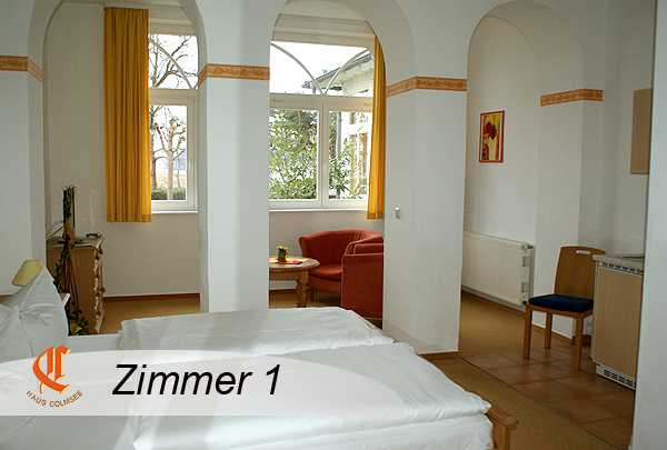 Unser Zimmer 1 ist sehr schön im Erdgeschoss bzw. Hochparterre zur Strandpromenade gelegen, so dass Sie auch hier das Meer sehen können. Die Gesamtgröße beträgt ca. 31 m² (inkl. Bad mit Du/WC).